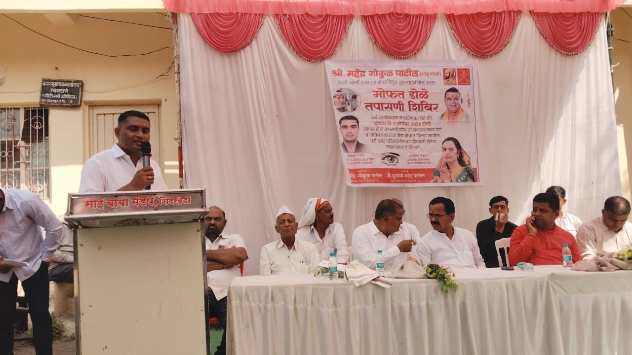 गावात महेंद्र गोकूळ पाटील उर्फ सोनू फौजी हे देशसेवा करून निवृत्त झाल्या बद्दल चिमठाणे गटाच्या नागरिकांसाठी महेंद्र पाटील यांनी आपण देशसेवा करून आलो तरी आता गोरगरीब जनतेची देखील सेवा करणे आपले कर्तव्ये असून आपण समाजच काही तरी घेणं लागतो विविध सामाजिक मूल्याचा विचार करून एक चिमठाणे गावात आगळा वेगळा कार्यक्रम आयोजित करून चिमठाणे गावचे महेंद्र गोकूळ पाटील यांच्या मार्गदर्शनाखाली शारदा नेत्रालय धुळे यांच्या माध्यमातून मोफत आरोग्य शिबिराचे आयोजन करण्यात आले होते तरी त्यात 100 ते 150 नागरिकांचे डोळे चेकअप करून शारदा नेत्रालय मध्ये फ्री मध्ये ऑपरेशन करण्यात येणार असल्याचे देखील सांगण्यात असून जवळपास 50 लोकांना या ठिकाणी शासकीय योजना मार्फत फ्री मध्ये ऑपरेशन करण्यात येणार असल्याचे सांगितले आहे अनेक नागरिकांनी या शिबिराचा लाभ घेतला याठिकाणी कार्यक्रमाचे अध्यक्ष धुळे जिल्हा पालकमंत्री आदरणीय नामदार जयकुमार भाऊ रावल तसेच कार्यक्रमाला प्रमुख पाहुणे म्हणून आदरणीय नारायण पाटील भाऊसाहेब कृषी उत्पन्न बाजार समिती सभापती दोंडाईचा श्री दीपक बागल भाजपा तालुका अध्यक्ष मा.सभापती रणजित भाऊसाहेब गिरासे,माजी उपसभापती दरबारसिंग गिरासे, मा.जि.प.सदस्य खंडू वजी भिल, माजी उपसरपंच सुरतसिंग गिरासे, मा जि, प,सदस्य महेंद्र गिरासे भाजपचे युवा मोर्चाचे राहुल निकम, कोमल गिरासे(फौजी) देवेंद्र ठाकूर नितीन गिरासे ,महेंद्र पाटील सर,भटू धनगर सर ,मोनू पाटील,भटू गिरासे,प्रवीण भोई पत्रकार डॉ जितेंद्र पाटील डॉ वैभव राजपूत आदिल पिजार वहाब शेख अमोल खैरनार अमोल रनद्दीवे अभिषेक पाटील इ.तसेच गावातील नागरीक जेष्ठ मंडळी महिला मोठ्या संख्येने उपस्थित होते..