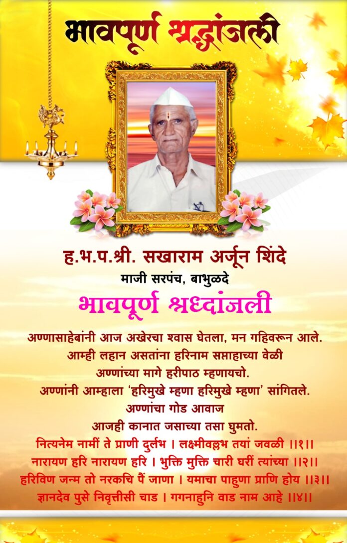 बाभुळदे येथे ज्येष्ठ समाजसेवक अण्णासाहेब सखाराम शिंदे यांचे दुःखद निधन